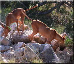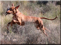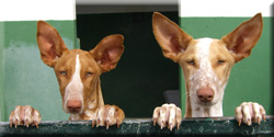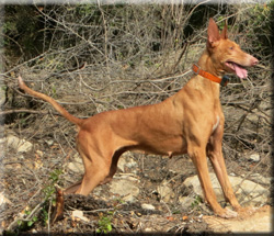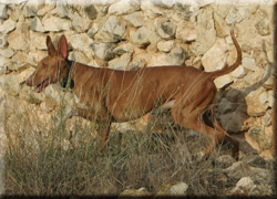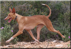 | Podenco Canario Las siete islas Canarias en el océano Atlántico, se encuentra cerca de la costa de África son el hogar del Podenco Canario. Se utilizan para la caza de conejos en terrenos rocosos y en las laderas de los volcanes extintos y en áreas intransitables. Si usted viaja a través de las islas usted encontrará los letreros que señalan a las áreas de la caza. Estas áreas están marcadas como "Zona de Adiestramiento" o con una silueta de perro negro sobre un fondo blanco. ![]() |